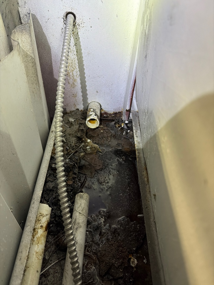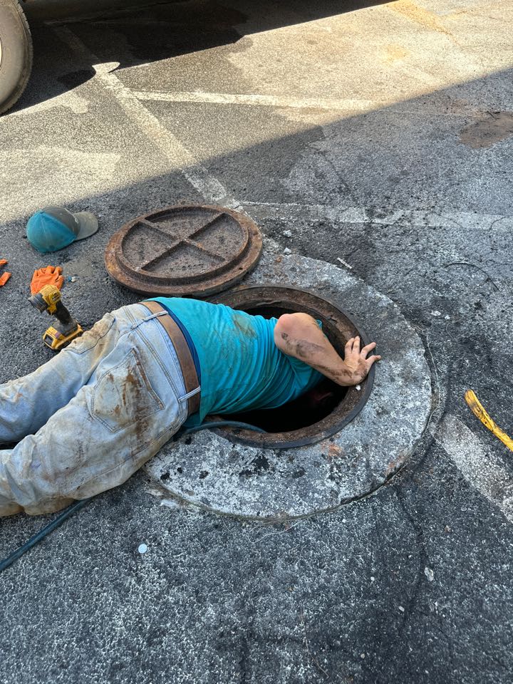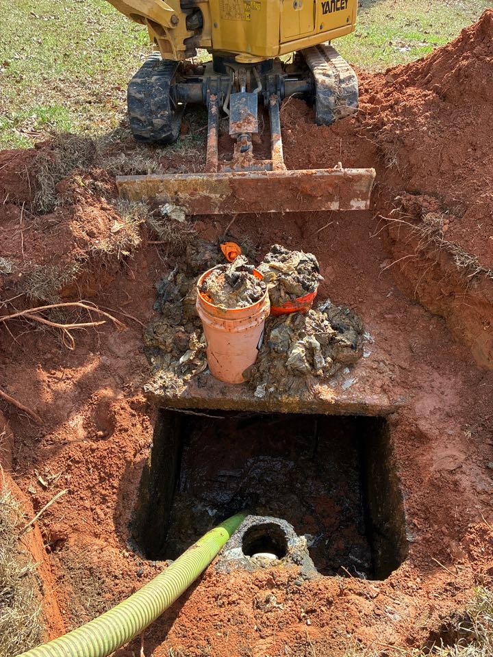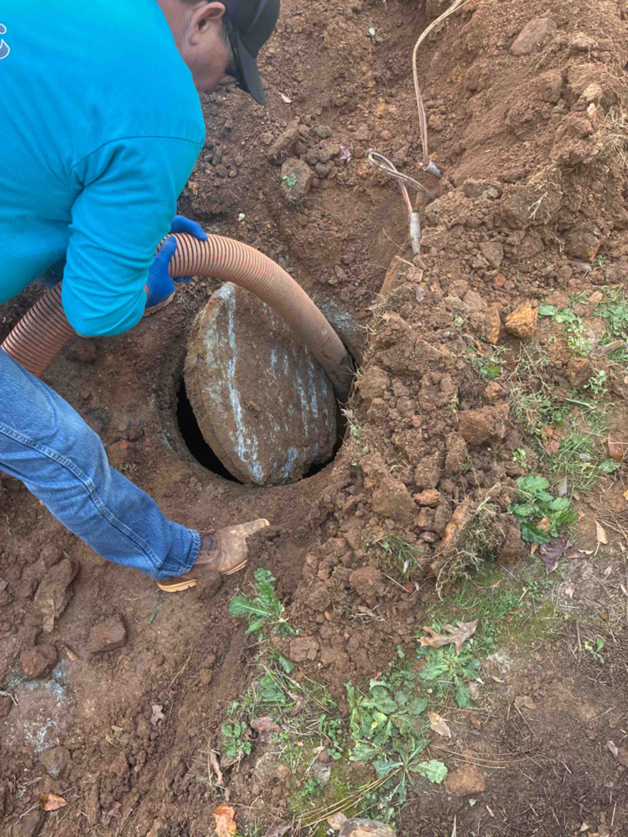 We ran jet machine to clear blockage before septic tank