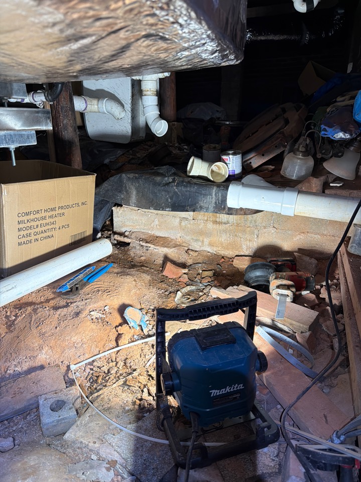 Removed cast iron from crawl space and ran new sewer line to city tap