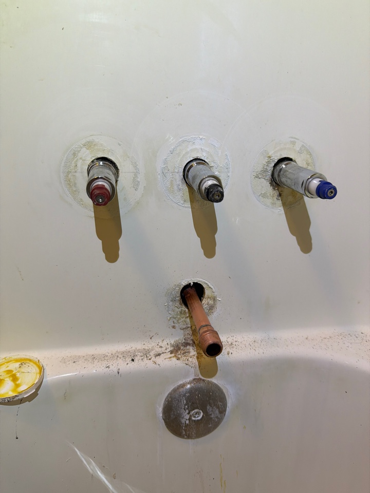 Capped water lines for shower valve while restoration company makes repairs