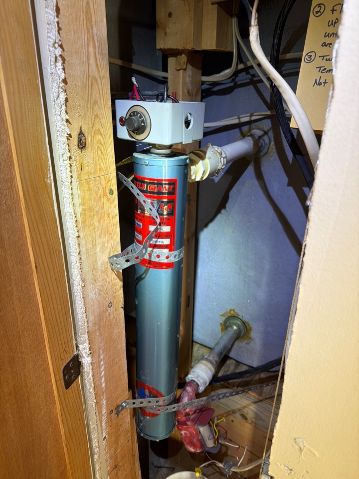 Reworked water heater piping to bring water heater up to code
