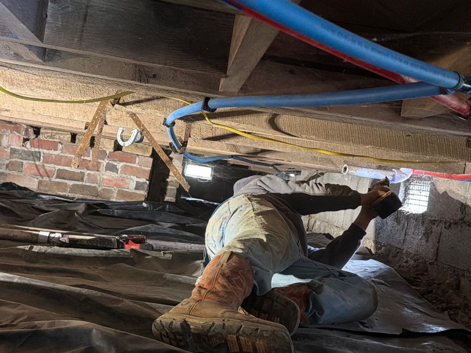 Installation of new field lines. We updated rear baffle and added a filter, ran approx 40 ft. of hard pipe and started a run of high capacity chambers. We installed 200 ft. of chambers, had the new septic system inspected by County’s Environmental Health and covered system and graded yard.